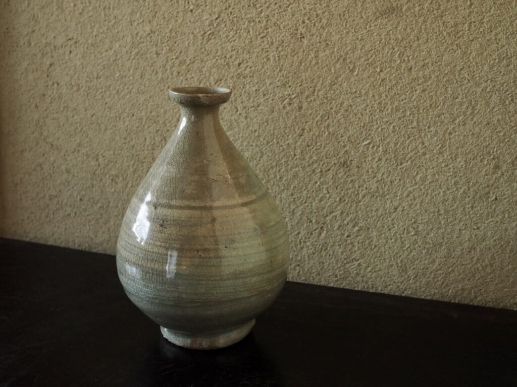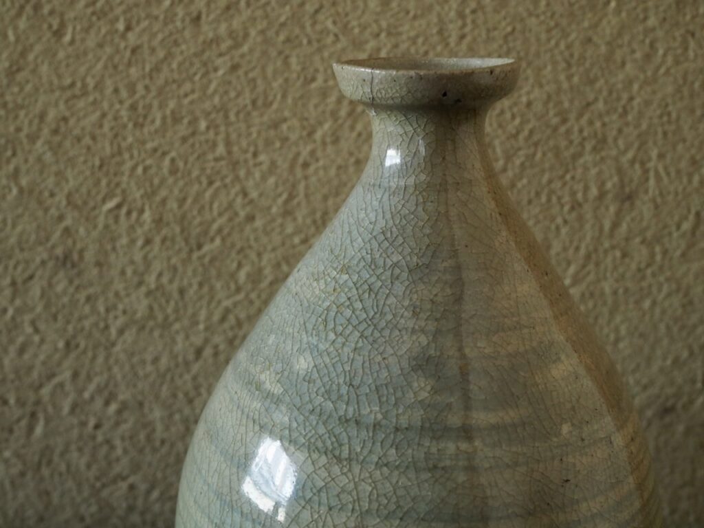 高さ17.3㎝ 胴径12.5㎝ 口径4.2㎝ 李朝初期 口にキズ 容量780ml 桐箱付