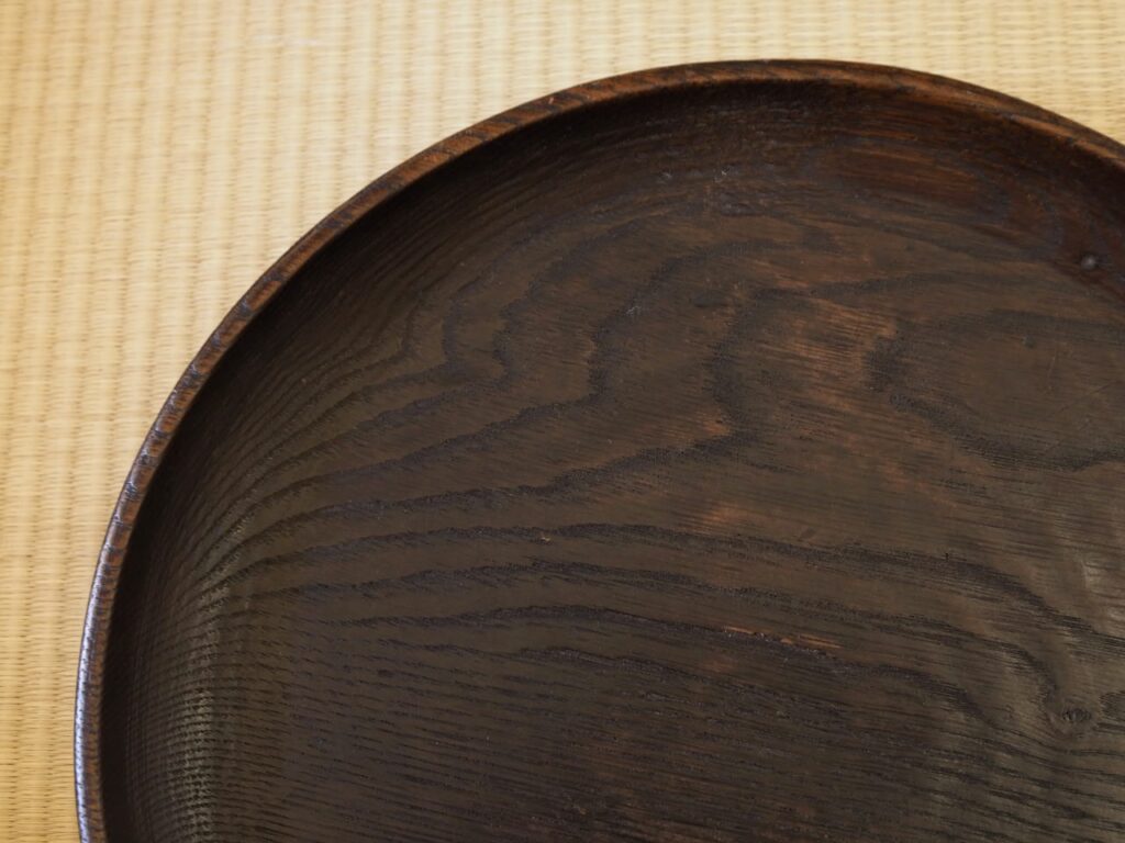 民間の什器ながら上品でどこかしら茶味のある木地盆といえます。
