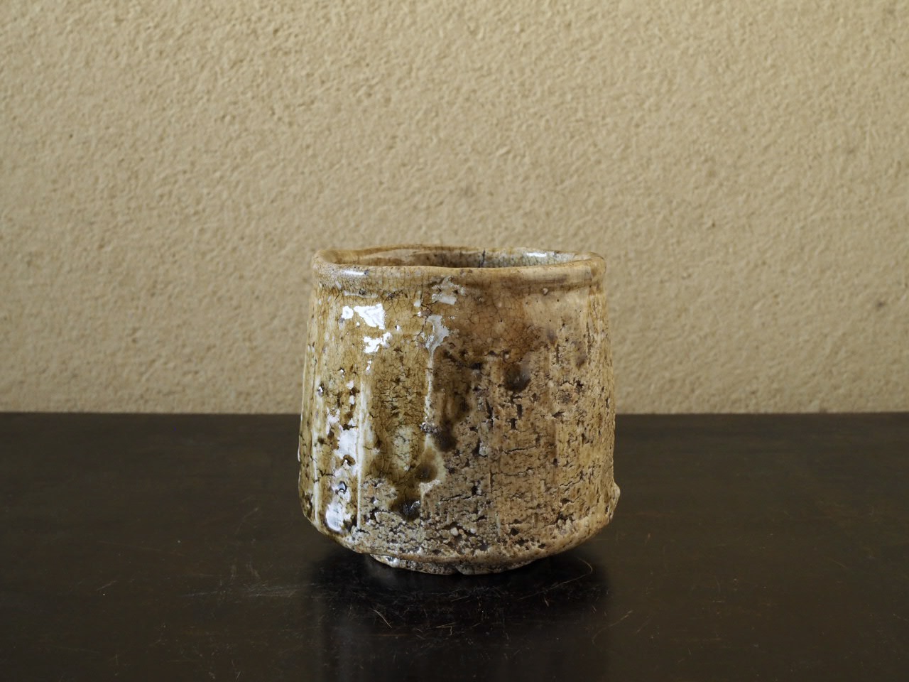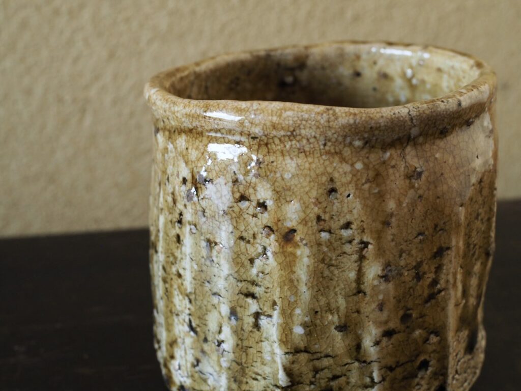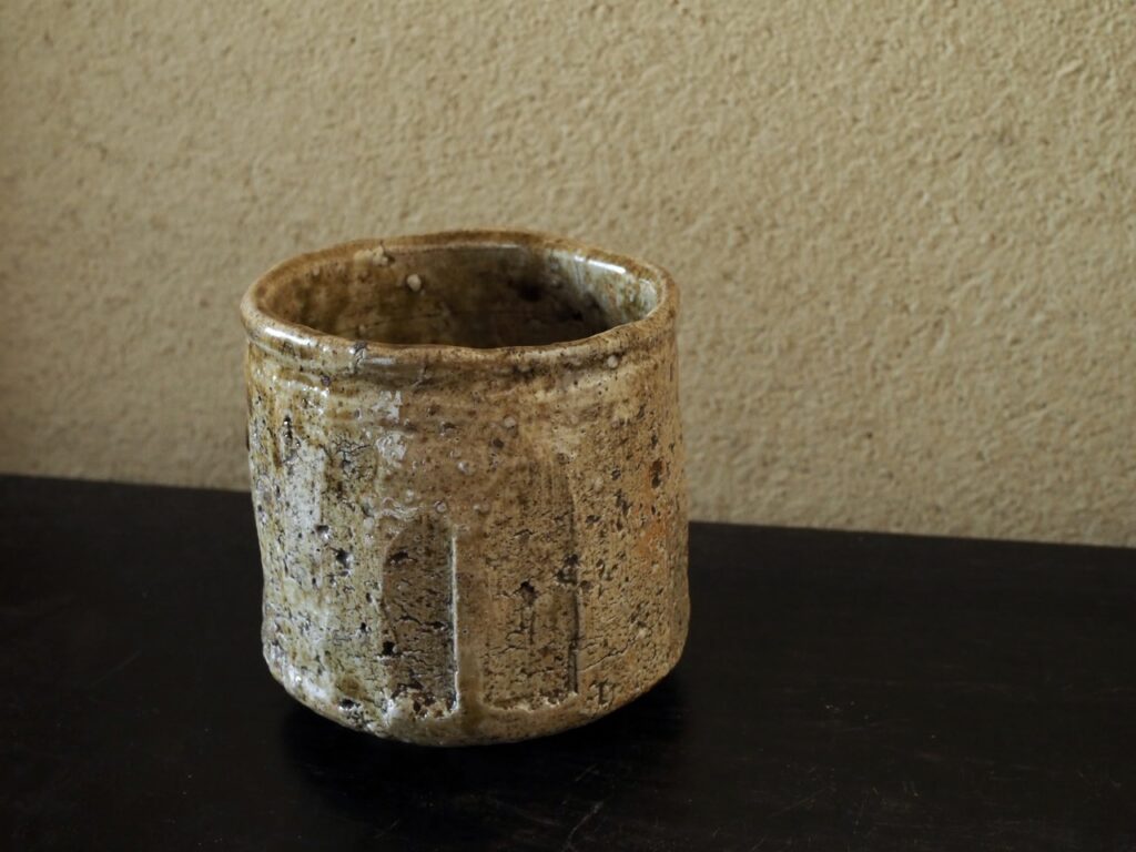 巡らせた面取りと強いヘラ削りに伊賀らしい豪快さを観じます。長石混じりのザクっとした