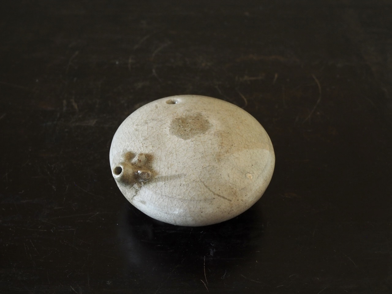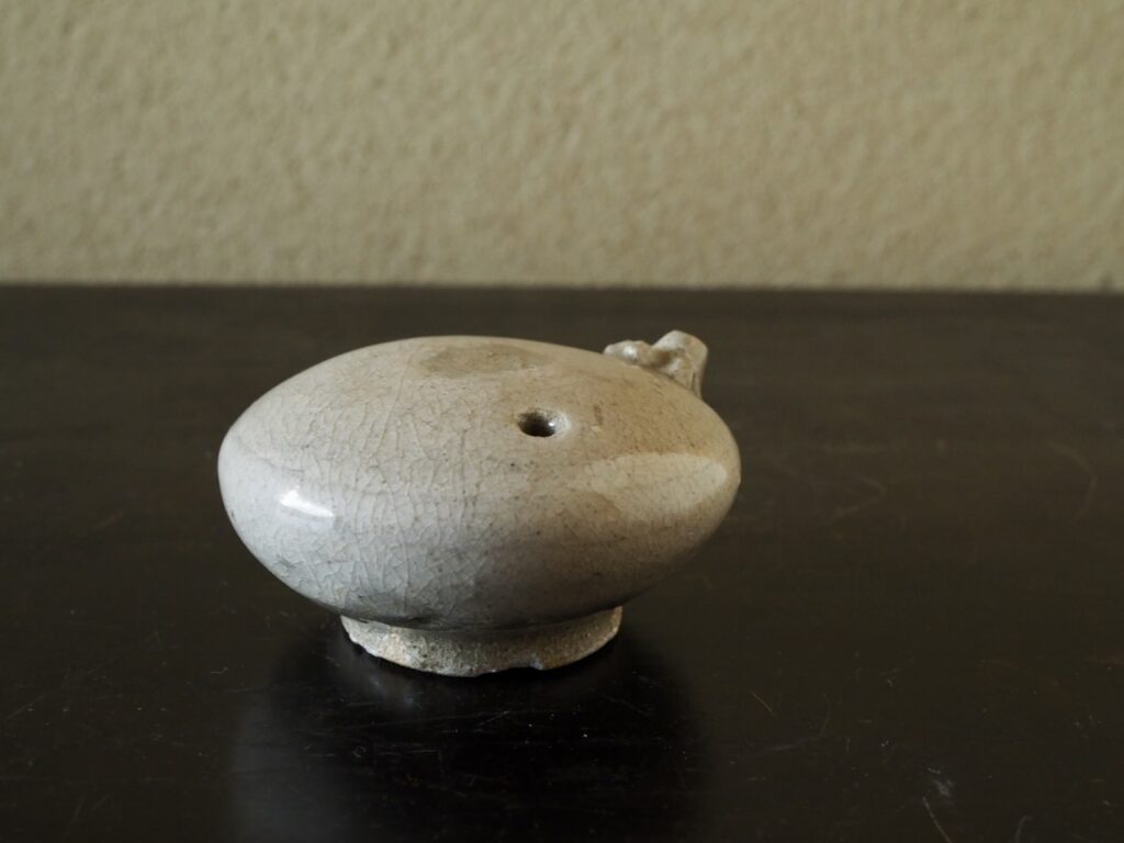 数の少ない粉青沙器、無地刷毛目の水滴です。初期特有のこんもりとした姿形と装飾の