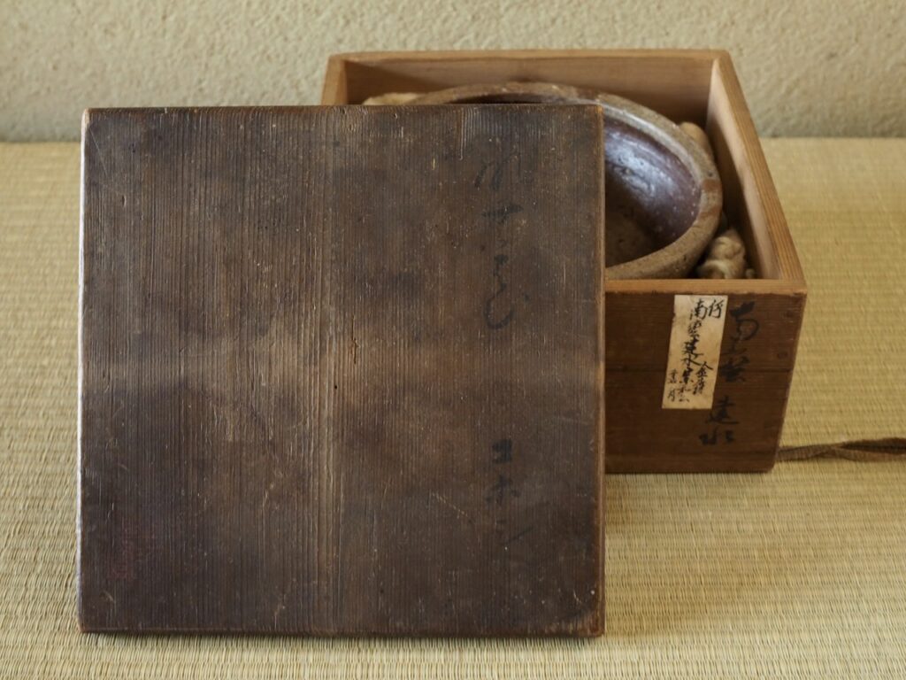 金森宗和箱書と伝わる南蛮内渋の建水で、ほっこりとした土味に内側に塗られた鉄釉の