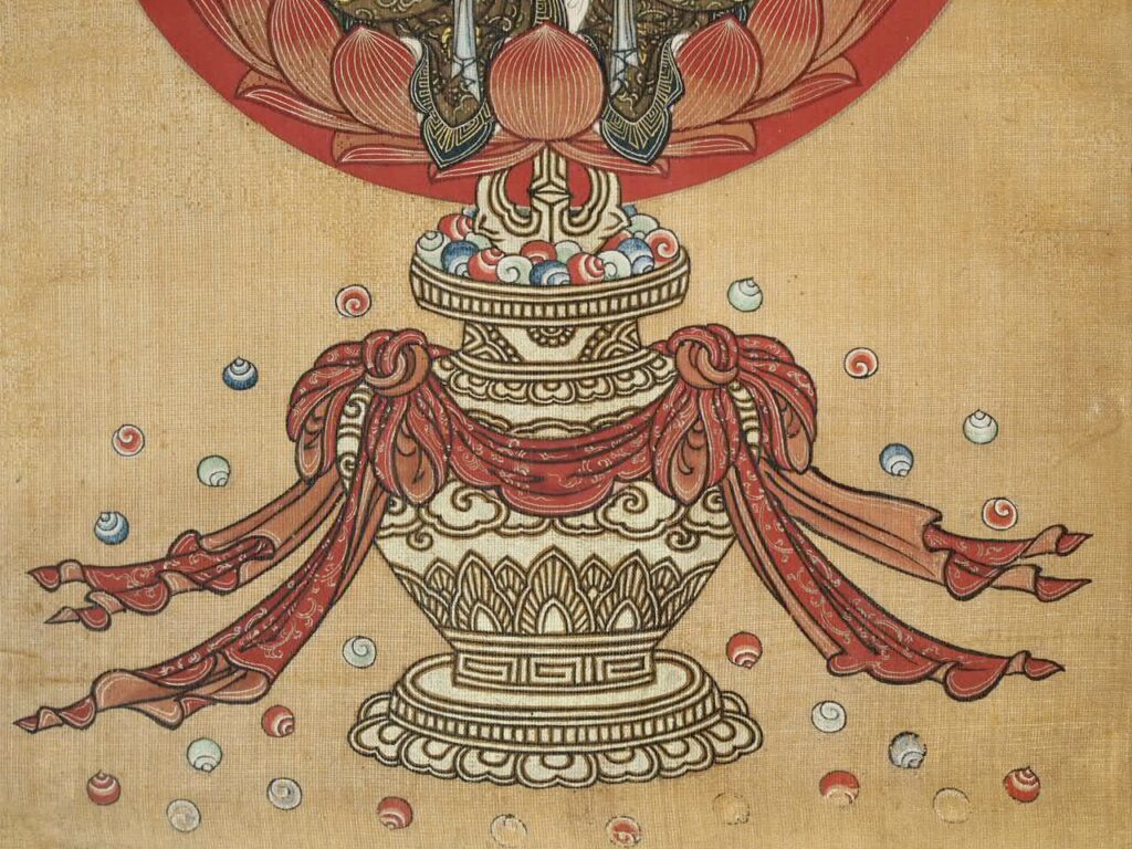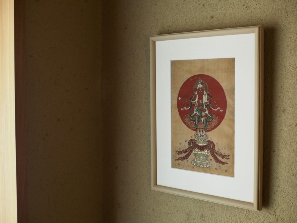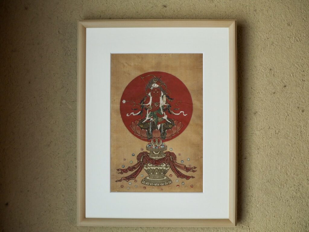 細やかな絹地に描かれた細密な描写と色彩からは密教像らしい重厚さ厳しさを感じます。