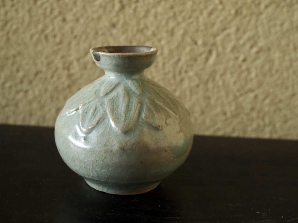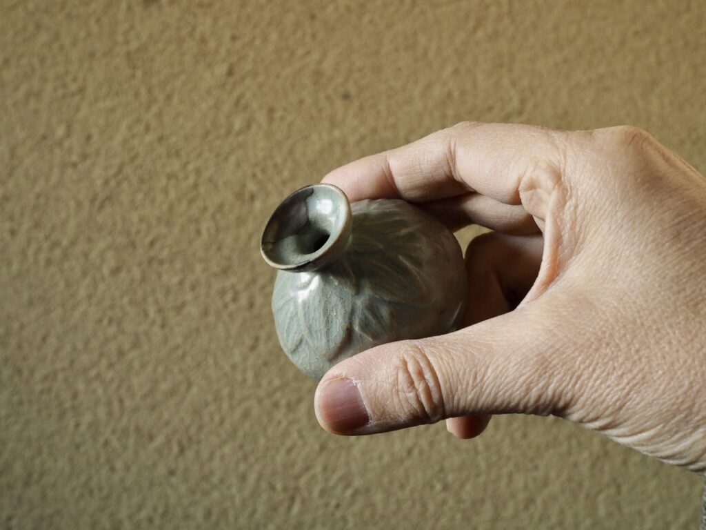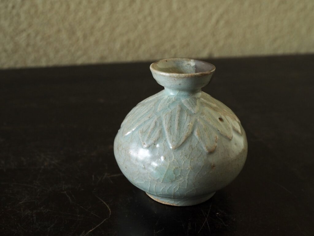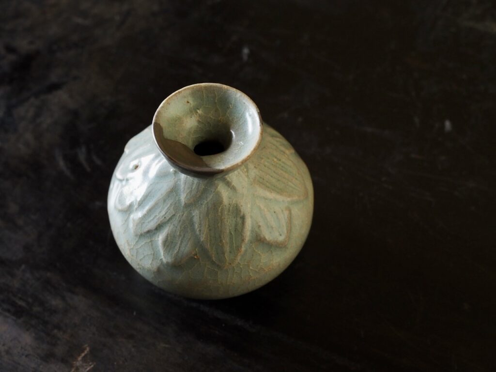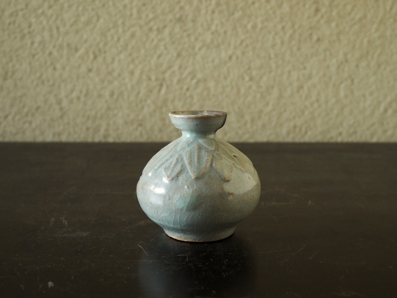 肩に表された陽刻の蓮弁文で、その格調の高さと貴婦人の道具らしい楚々とした佇まいに惹かれます。