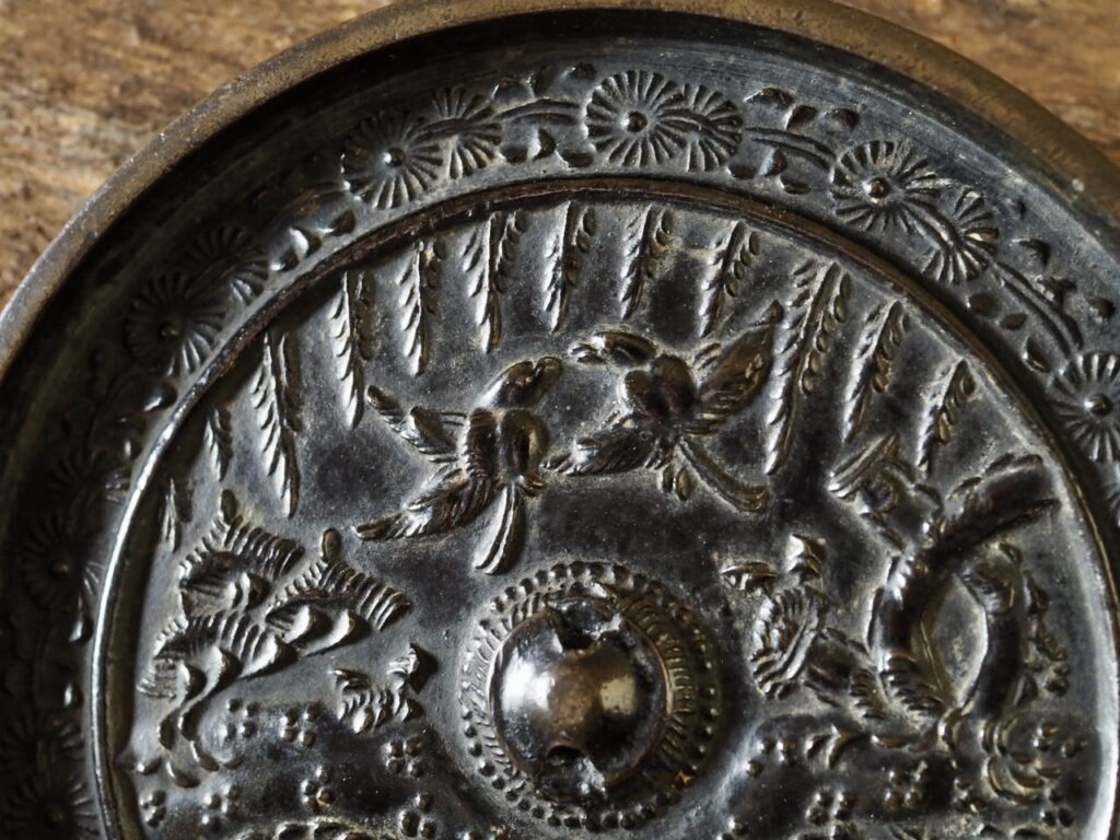 「洲浜藤双雀鏡」とでも呼べば良いでしょうか、おそらく寺社などに伝わった