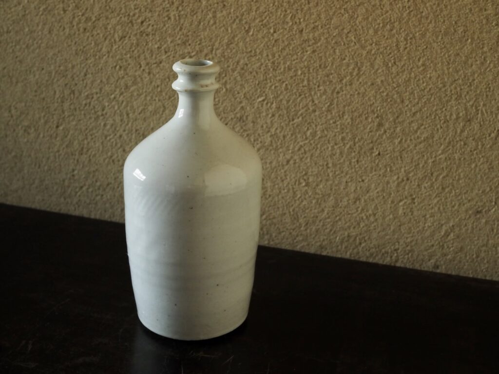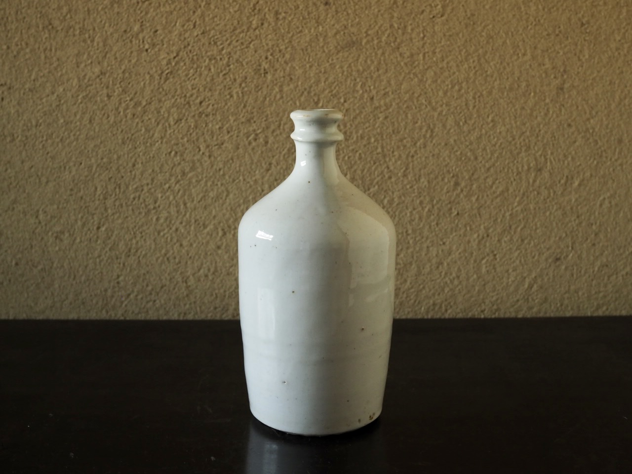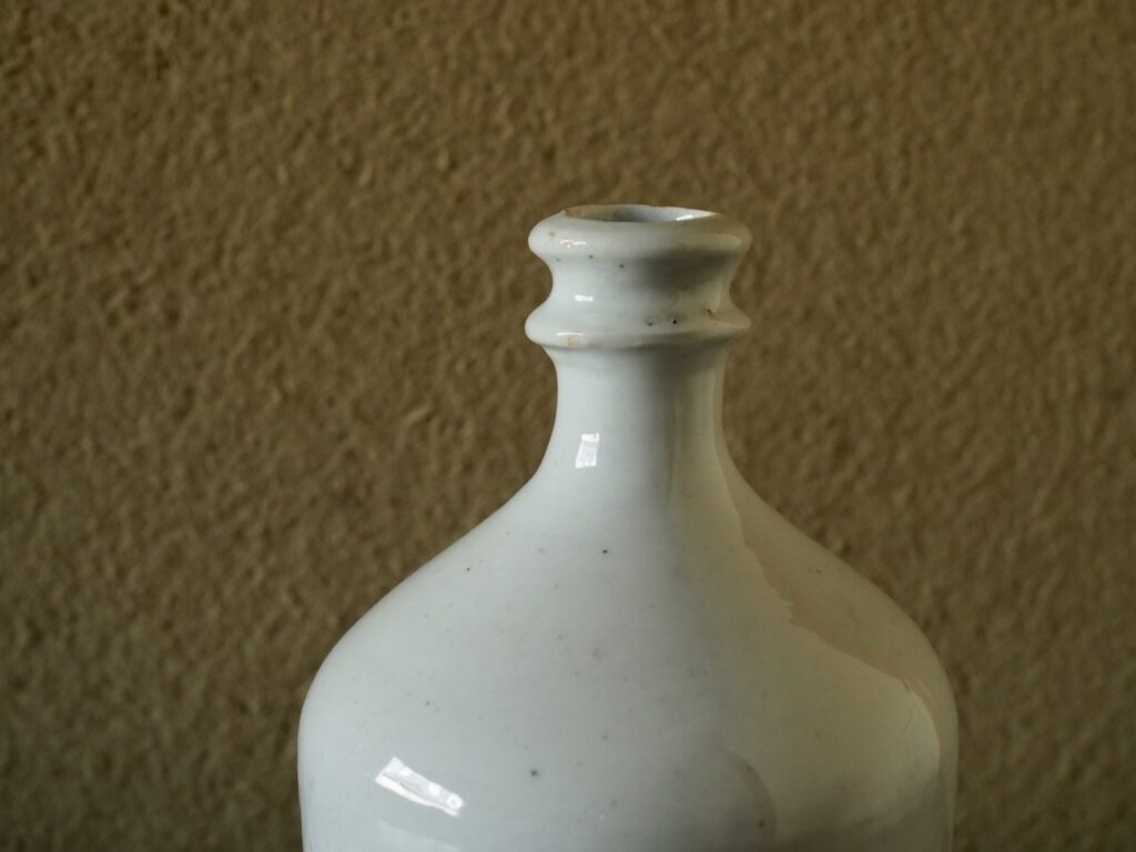 が描かれた瓶が知られますが、こちらは珍しく白磁の瓶で、その西洋風のフォルムとアガリの