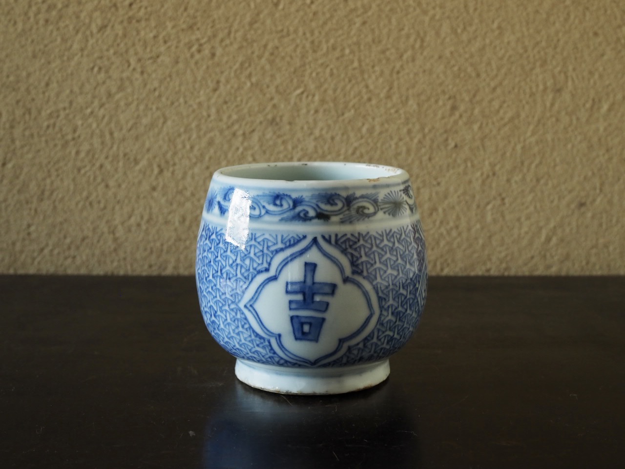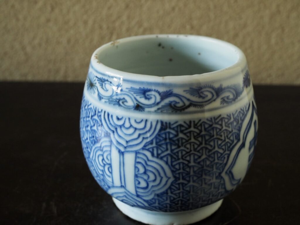 周りを埋め尽くす毘沙門亀甲文にも豪奢な趣があります。艶やかな肌合いに良好な呉須の発色、