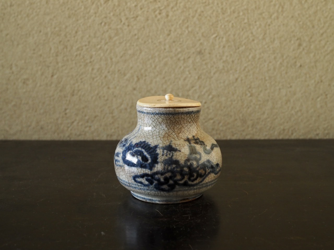中野焼は長崎平戸で焼かれたとされた陶胎染付で、「ひび焼」とも呼ばれ全体が貫入で