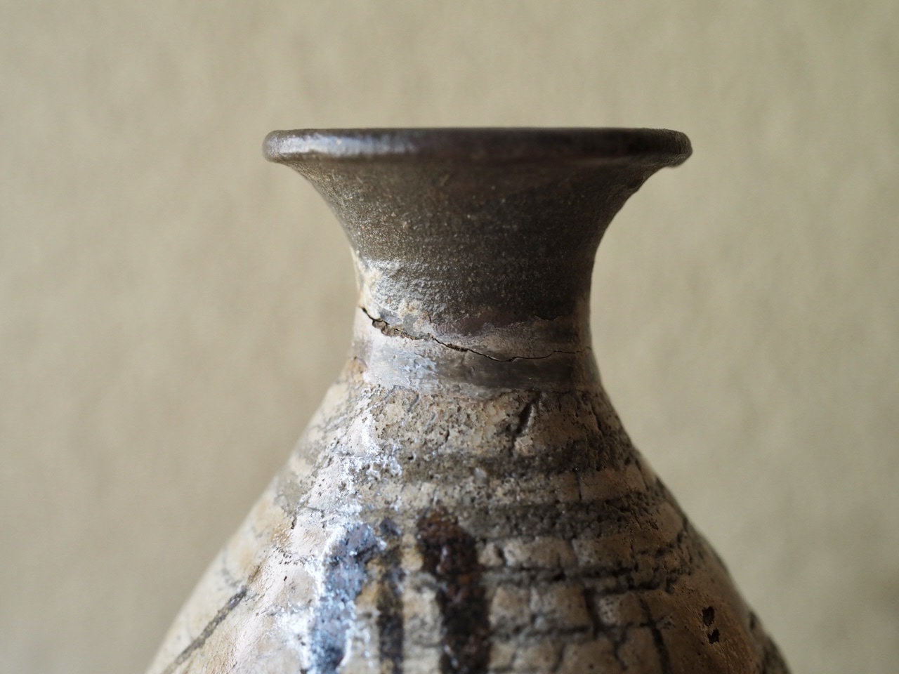 別の徳利の口部を呼継ぎした鶏龍山羽衣手の徳利です。一合サイズが可愛らしく、少し