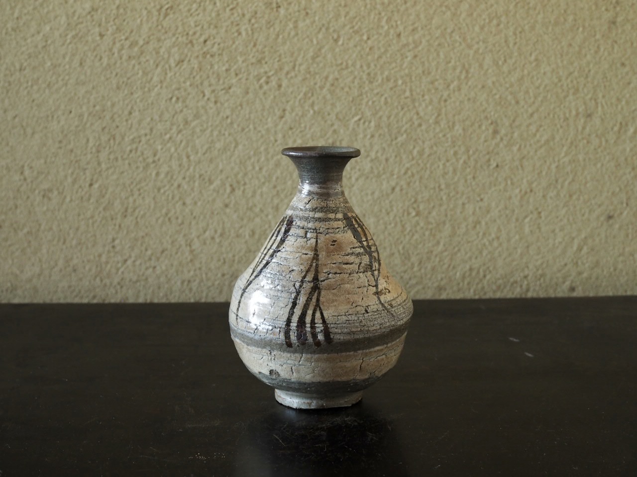 へしゃげた姿に白泥の味、鉄絵の力の抜け具合そして鶏龍山独特のシワの出た肌合い。