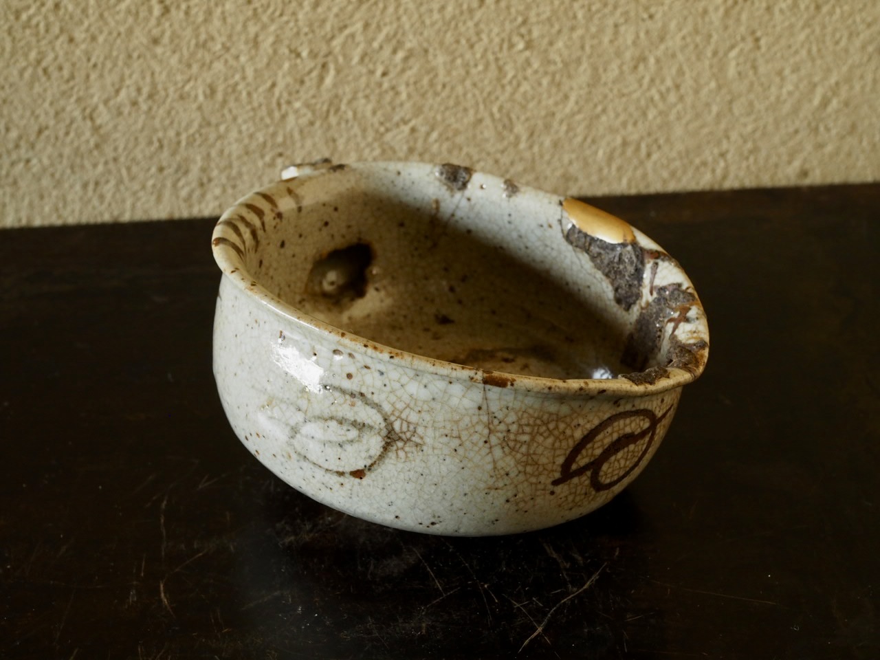 直径10.8×13.9㎝ 高さ5.3〜7.3㎝ 桃山〜江戸初 高台補修金継ぎニュウ 容量約200ml