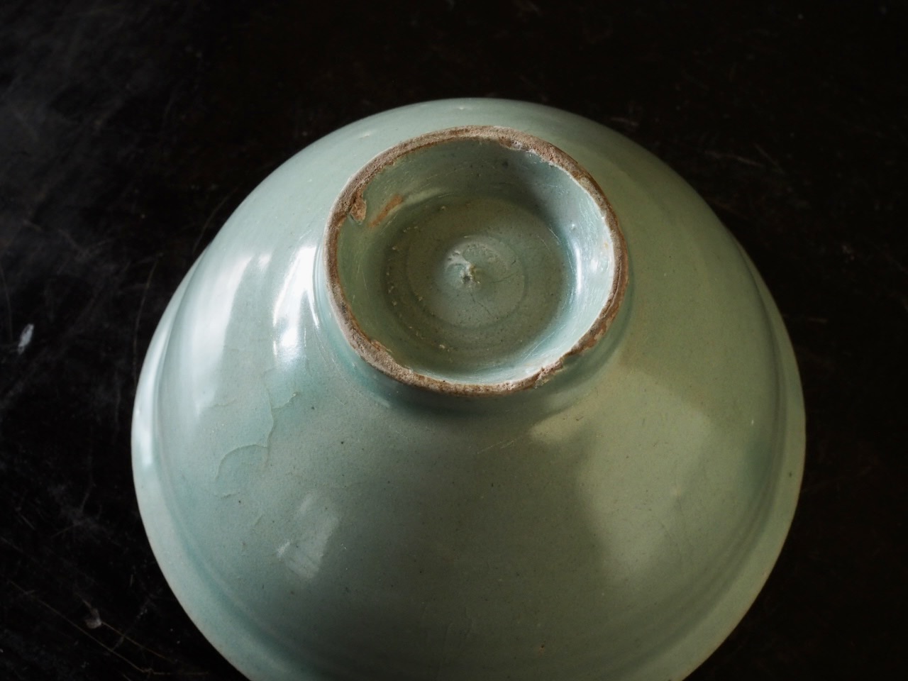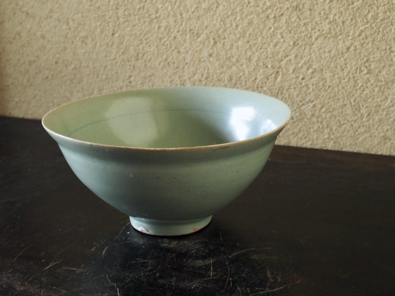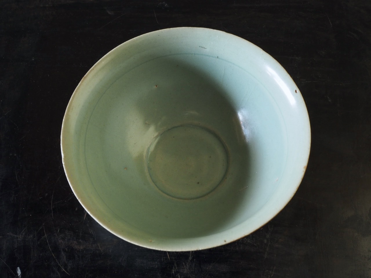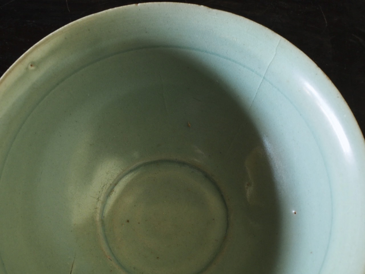 砧青磁を想わせる青味の強い青磁釉は、カセもなく明るく透き通って