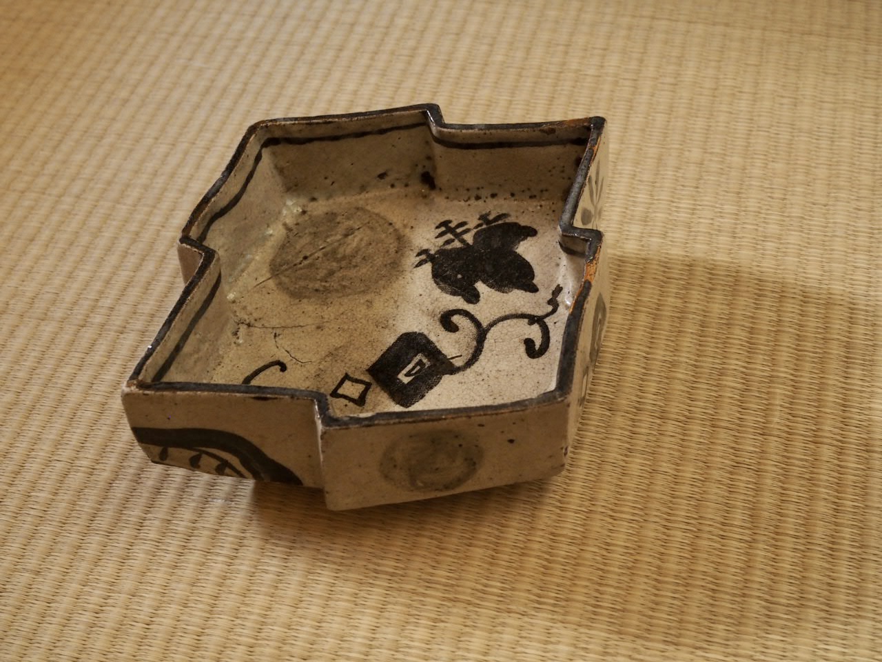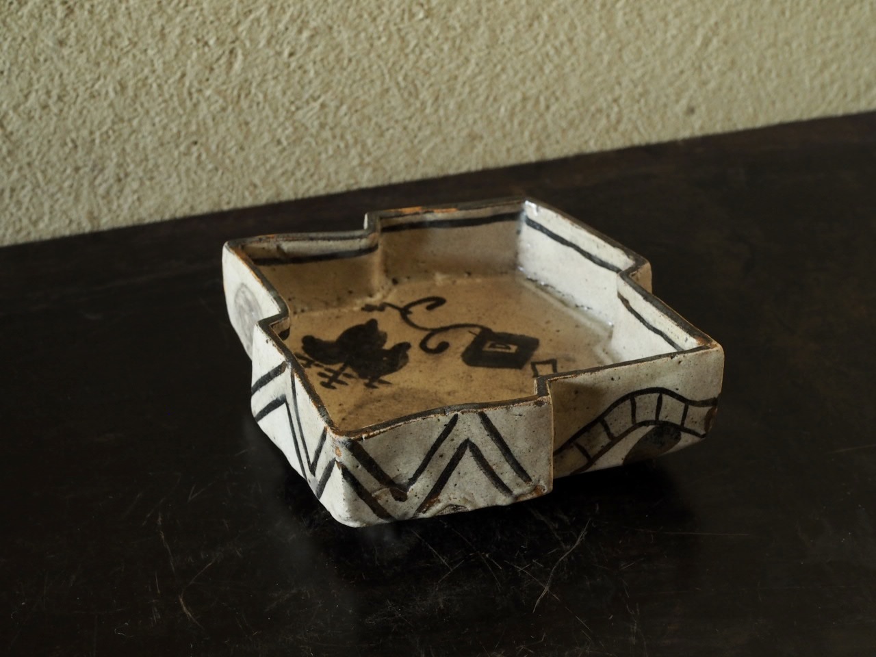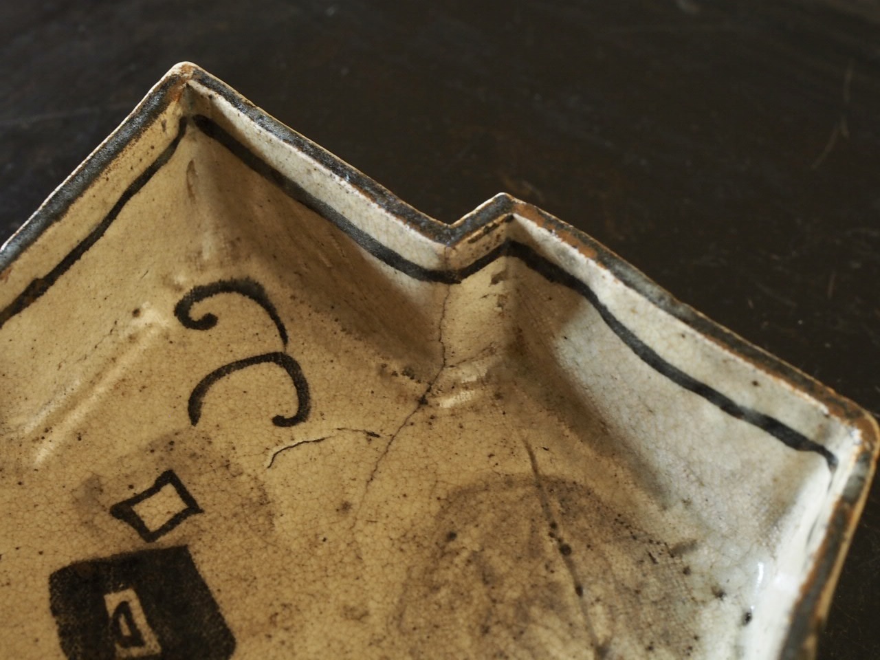 辻ヶ花裂を彷彿とさせる前衛的意匠に、これぞ織部陶という魅力が発揮されています。