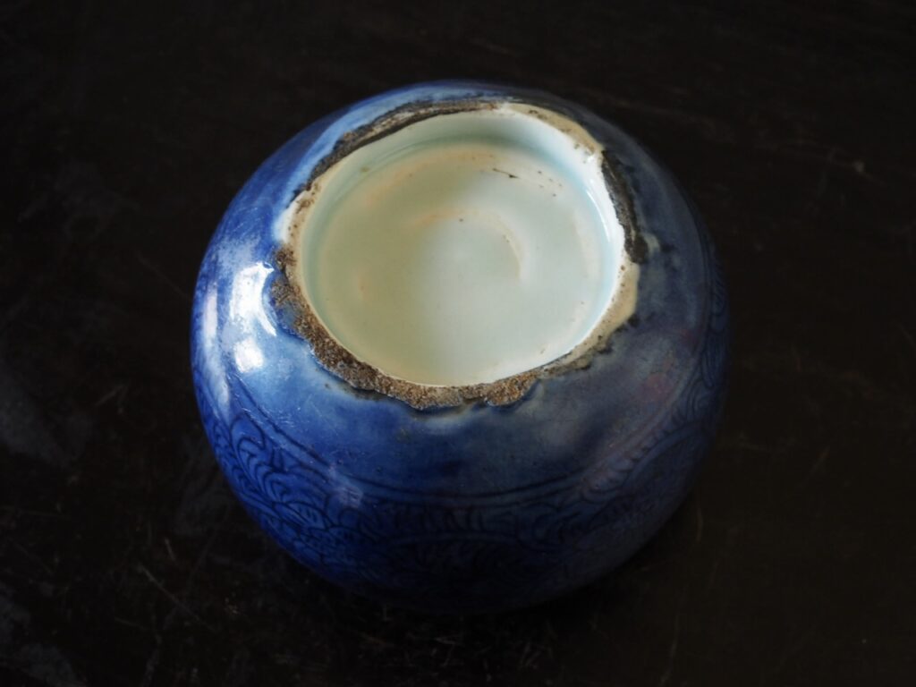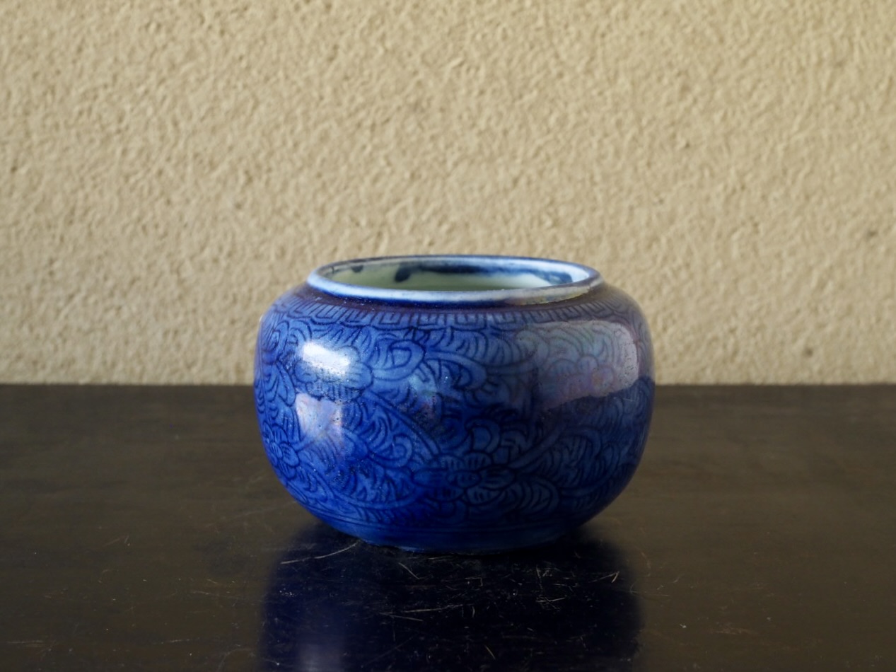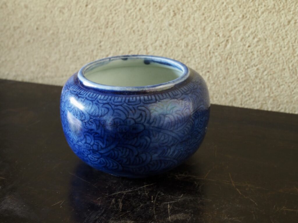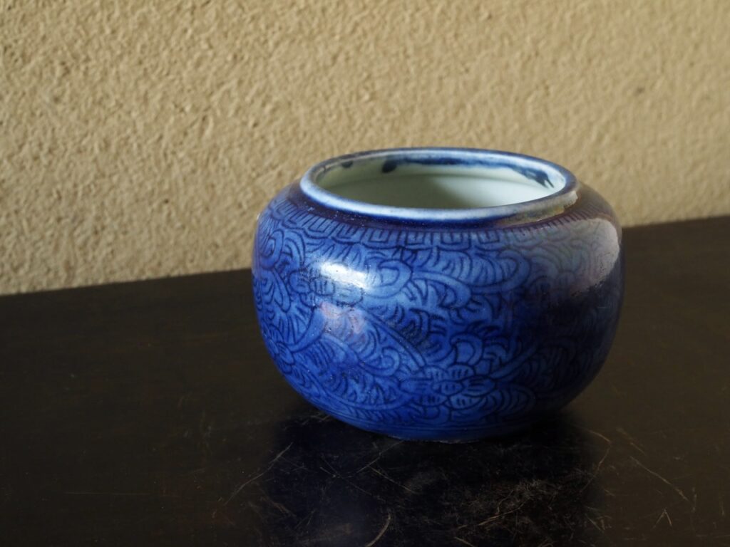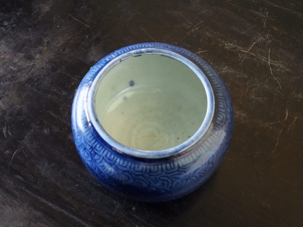 器高が低く口が広いこのような壺は缸(こう)と呼ばれ、茶などを保温するための容器で