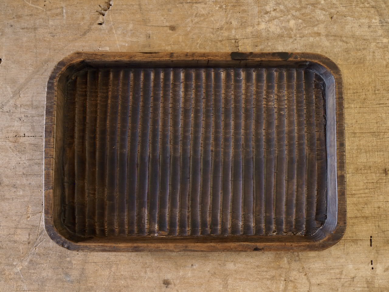 当店でも久しぶりの取り扱いになる手頃な大きさの我谷盆。鑿で彫っただけの