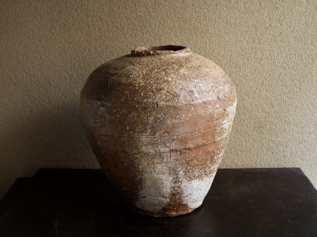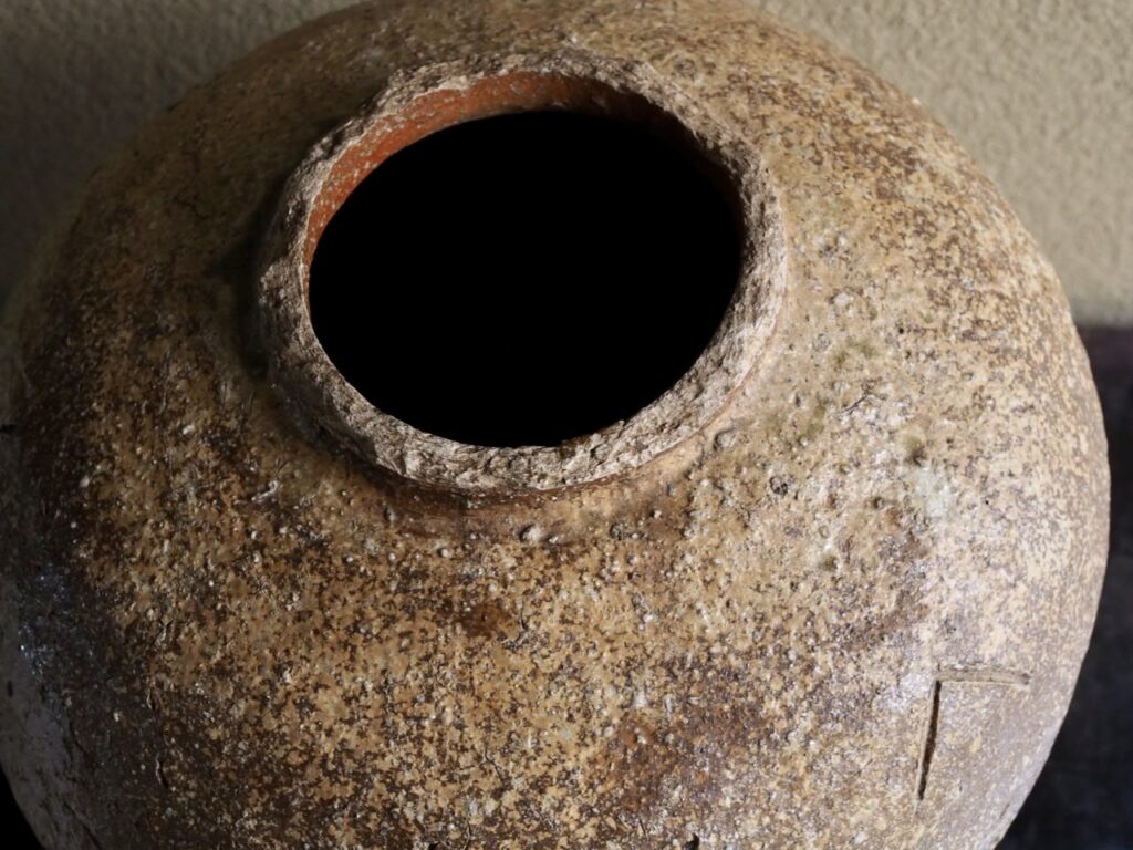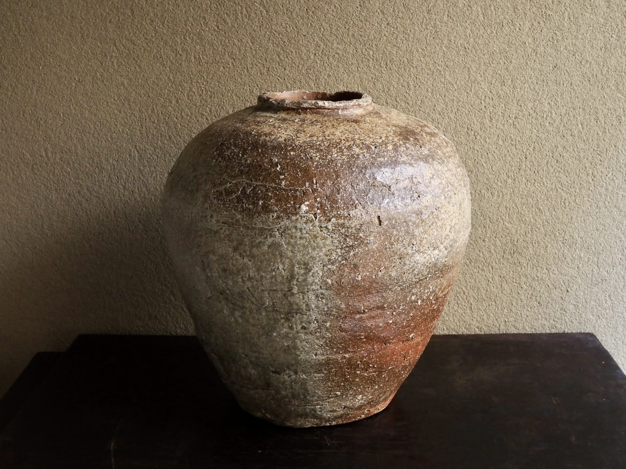 信楽大壺 2026 1/05 2025年12月9日 口は欠けてありませんが、強く張った肩に赤い肌、白いカセ、たっぷりと掛かった 自然釉。横広のどっしりとした重量感に窯印と見処たくさんの厳しい壺です。 高さ35.5㎝ 胴径34.6㎝ 口径12.5㎝ 室町時代 桐箱付 詳細、価格はお問い合わせください。 六古窯 古陶磁