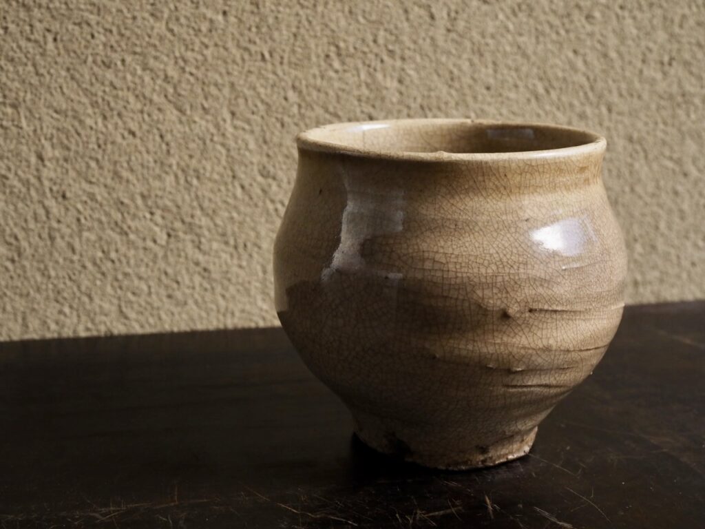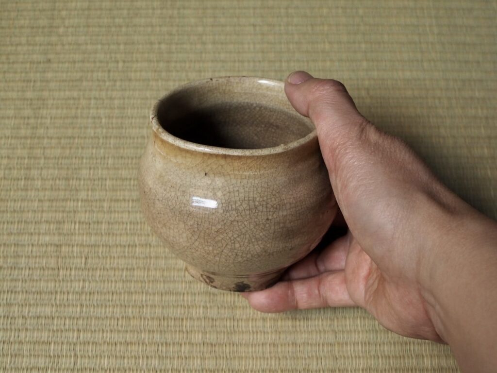 井戸脇塩笥茶碗 2026 1/05 2025年12月20日 軟らかな伝世味と掌にスッと収まるサイズ感が嬉しいです。 腰辺りの轆轤目やベタ底総釉も見処です。 口径8.6〜8.9㎝ 胴径10.4㎝ 高さ9.5㎝ 朝鮮中期 ニュウ3.7㎝ 仕覆時代箱 お買い上げありがとうございました。 李朝 茶道具