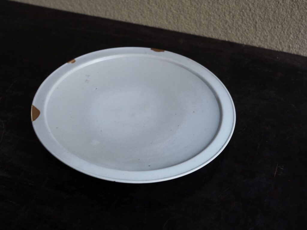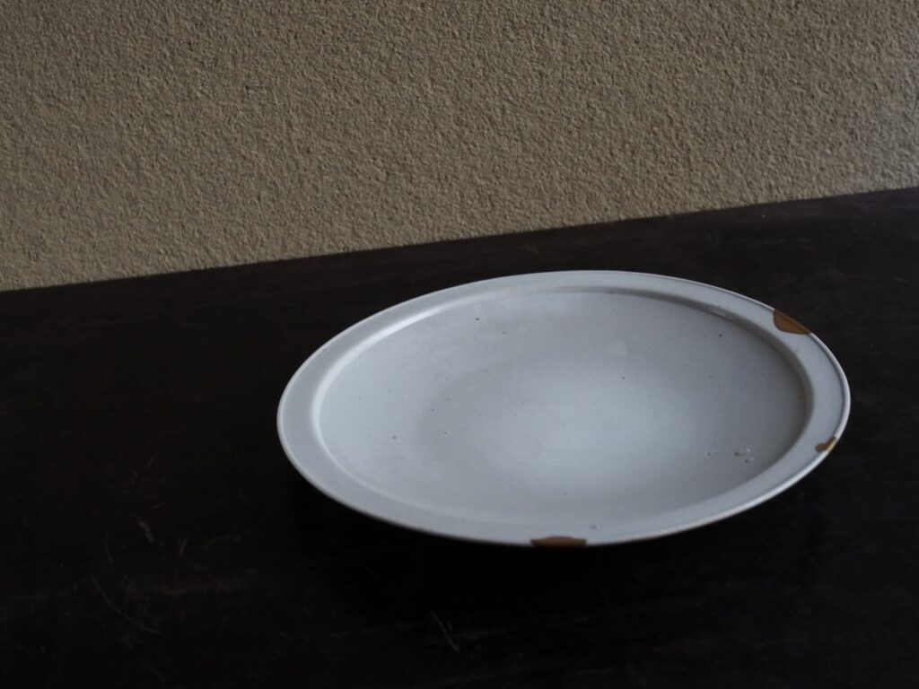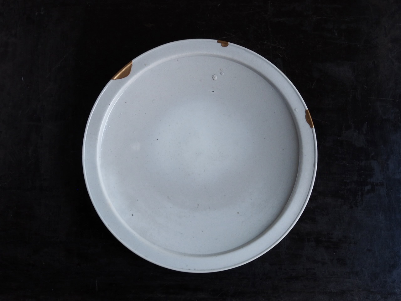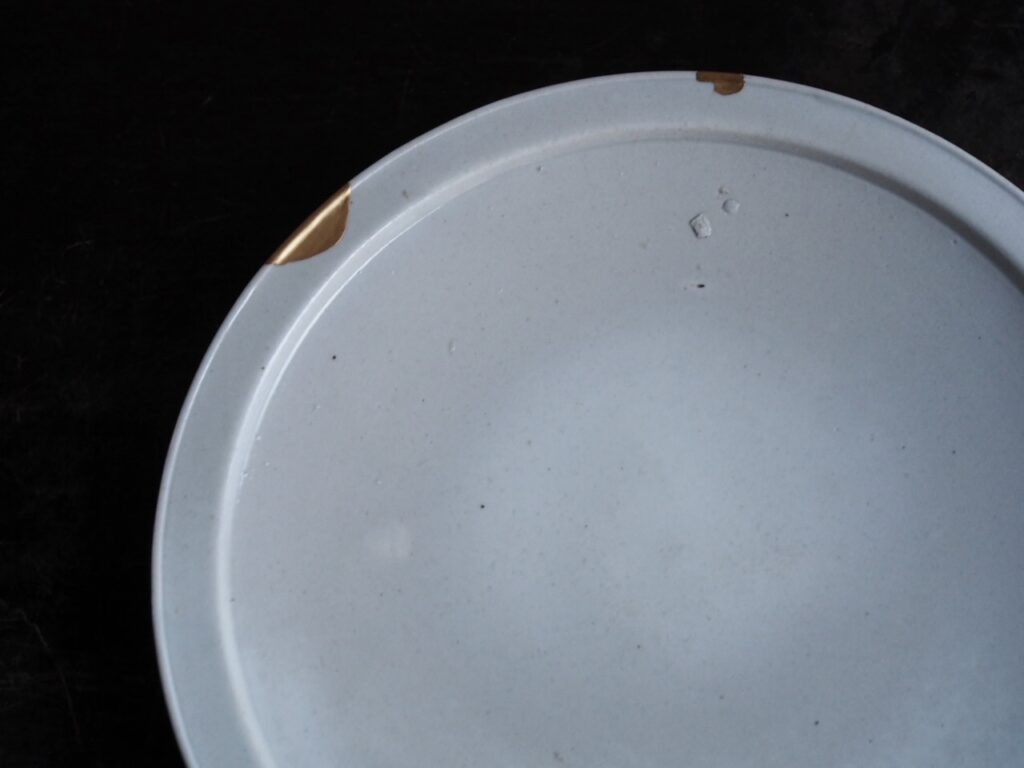 直径21.6㎝ 高さ2.0〜2.9㎝ 朝鮮初期 金継ぎニュウ5㎜2㎝ 桐箱付