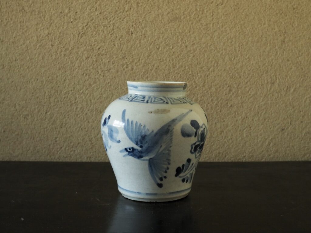 李朝染付花鳥文壺