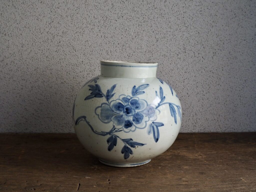 李朝染付牡丹壺