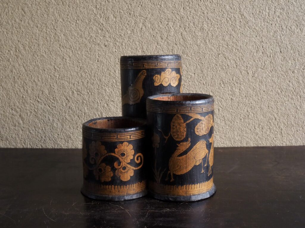 李朝竹彫筆筒