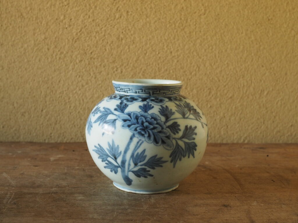 李朝染付牡丹壺