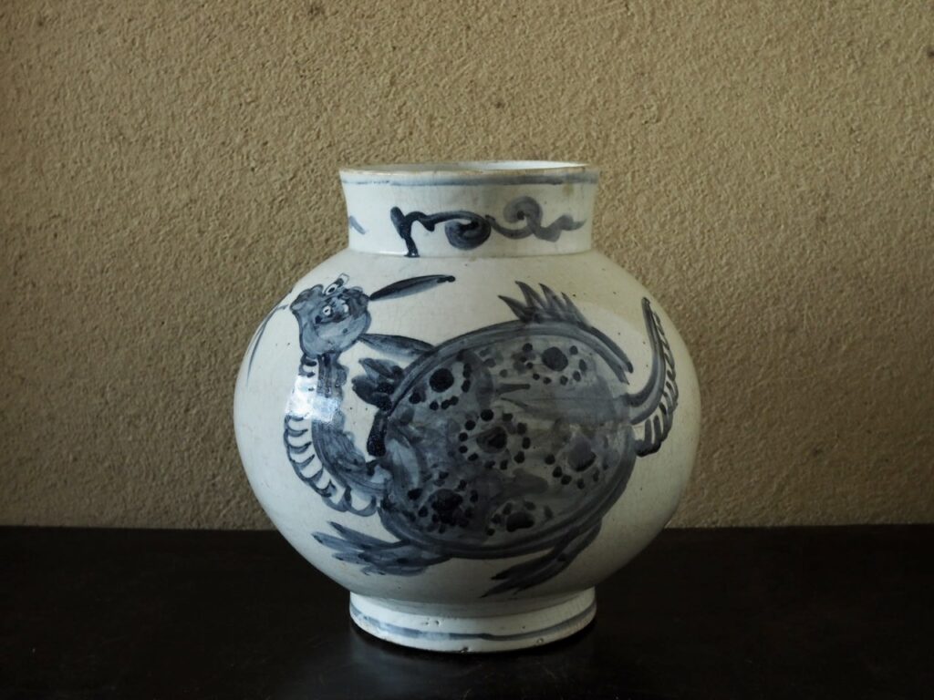 李朝染付亀文壺